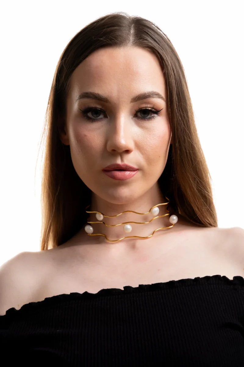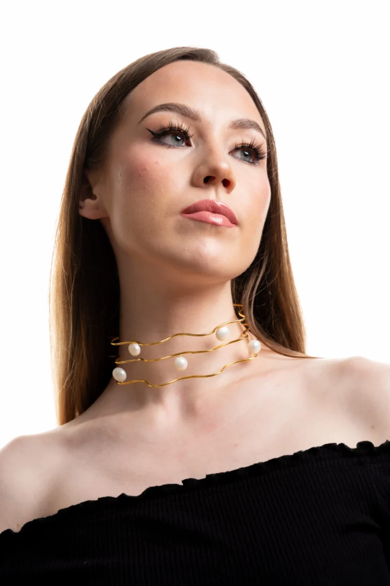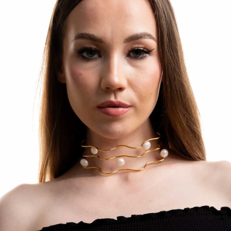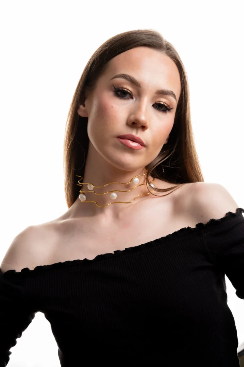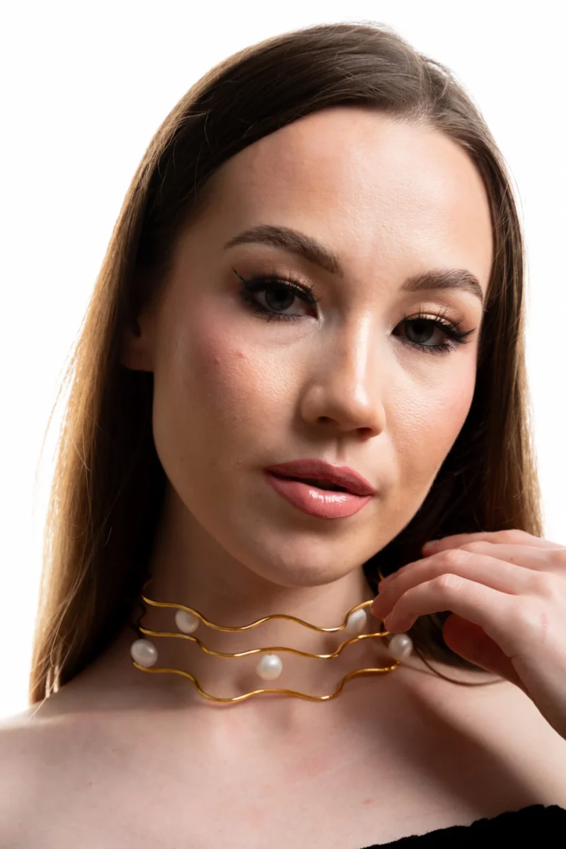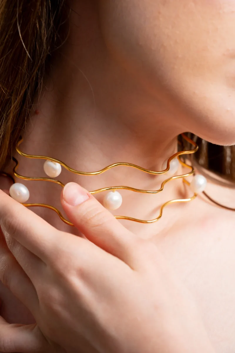 Material : 21k gold-plated handmade brass + 5 natural pearls